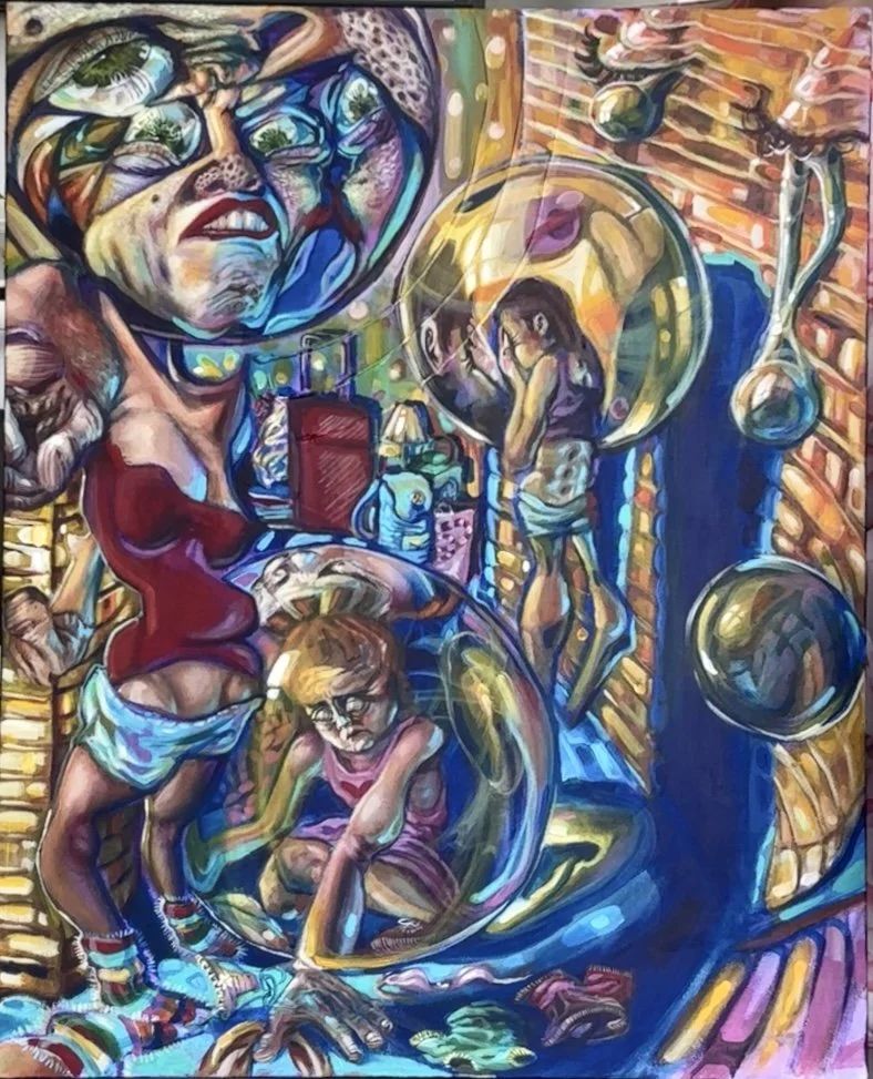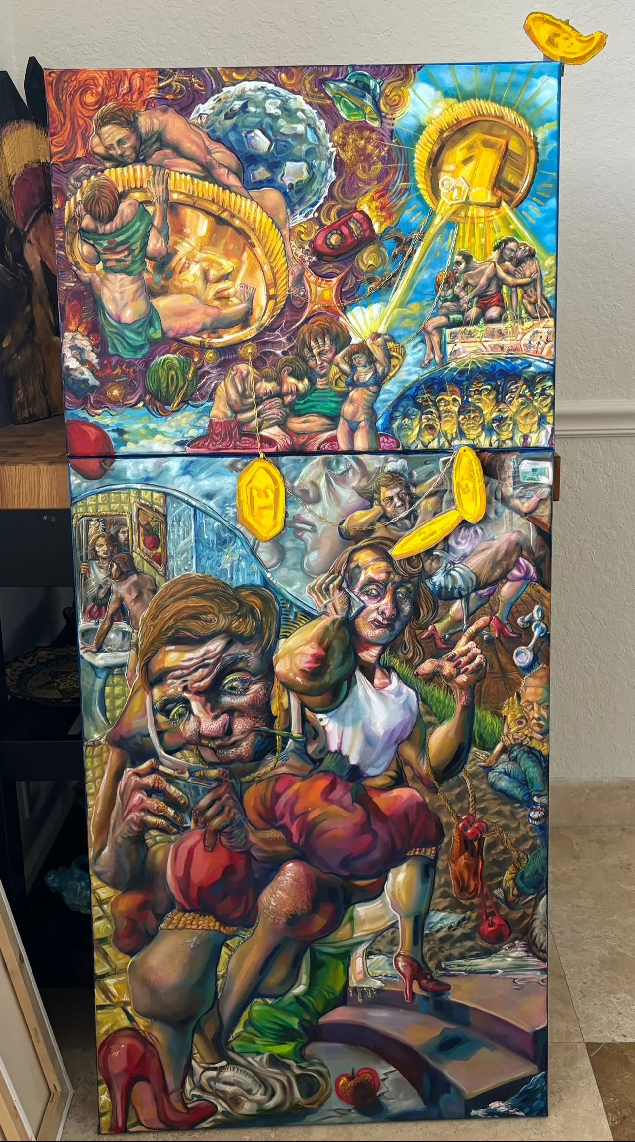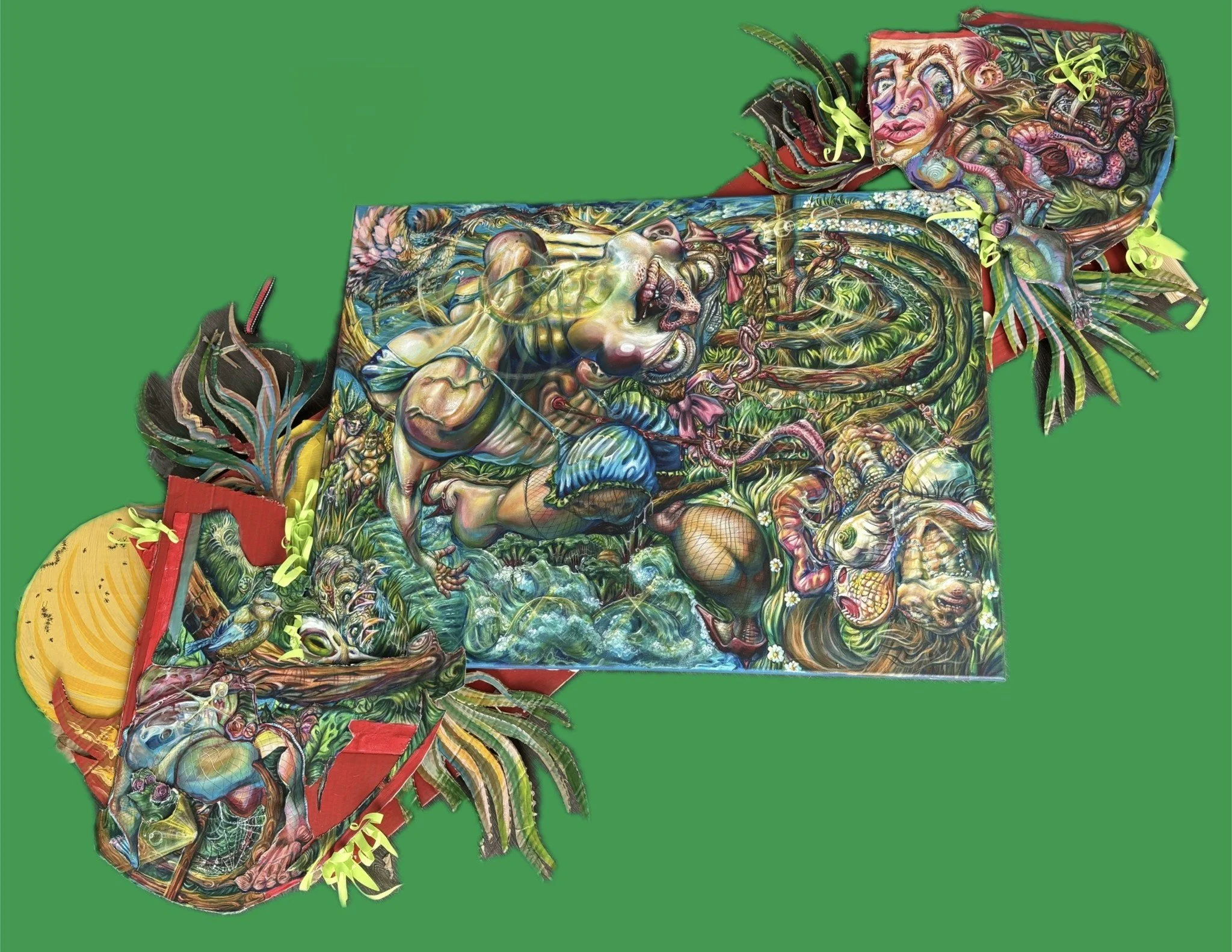 Trapped in Florida, 2025. Oil on canvas panel, Mixed media, 90x120 cm.
